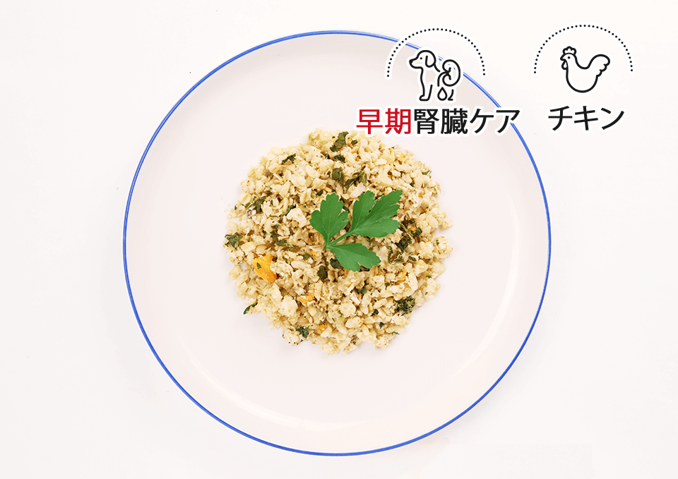 タンパク質、リンを制限しながら腸内フローラに配慮した発酵野菜トライプ乳酸菌とリンの排出を促すカルシウムを配合し、食いつきを高めた早期腎臓病向けの療法食です。