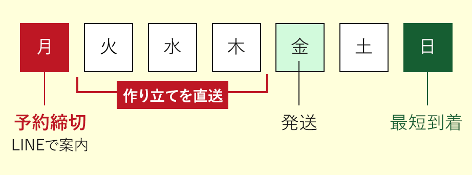 • ※毎週月曜日に予約を締切り、金曜日に発送いたします。