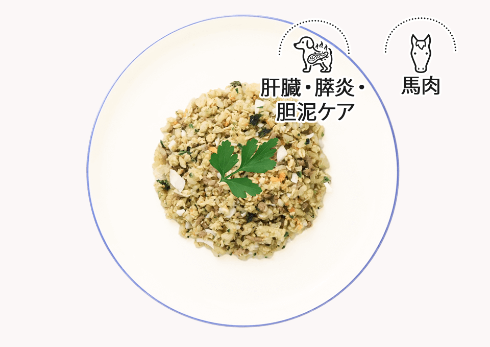 脂質を抑えながら消化吸収に配慮し、肝臓や膵臓への負担を軽減するために、低脂肪設計のたんぱく源と消化を助ける発酵野菜トライプ乳酸菌を配合。