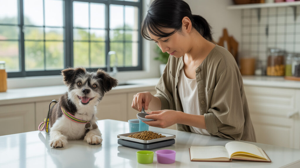 - 体重・活動量に応じてフード量を計算し、1日あたりのグラムをキッチンスケールで毎回測ることが最重要です。