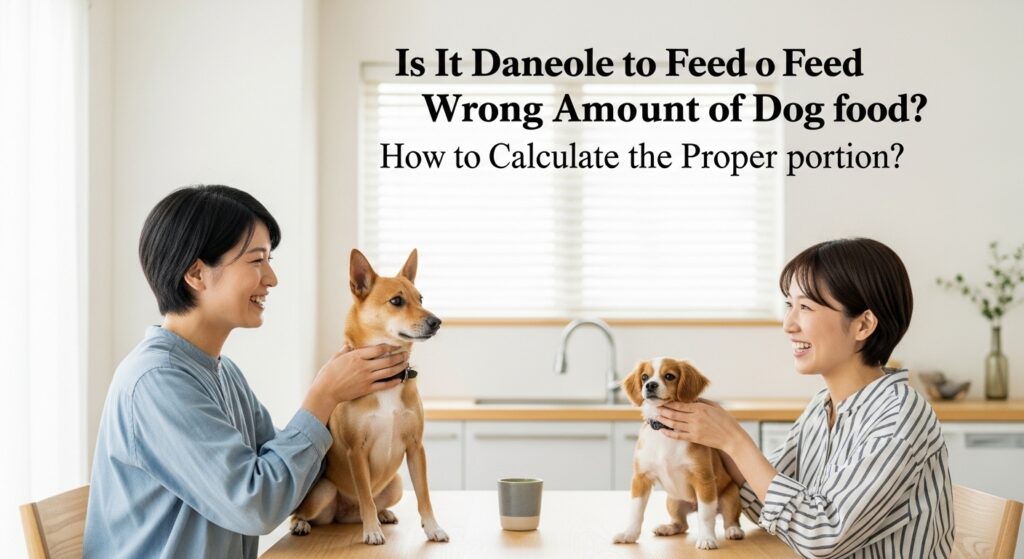 - ドッグフードの適正量は「RER(70×体重^0.75)で基礎カロリーを求め、ライフステージ係数をかけてDERを算出し、フードのエネルギー量で割る」という3ステップで計算するのが標準的な方法。 パッケージの給餌量表は便利な参考値ですが、個体差や活動量・体型によって必要量は変わるため、あくまでスタートラインの目安として使い、実際には体重と体型の変化で補正していくことが大切です。