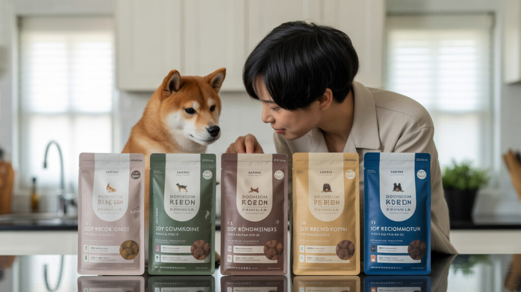 おすすめの国産ドッグフード6選は、「乾燥対策に必要な栄養素を含むか」「原材料の安心感」「ライフステージ・体質ごとの適合性」を軸に選ぶのが理想です。一言で言うと、「成分ラベルで選び、愛犬の状態で最終判断する」ことが重要です。ここでは、実際の商品名は仮置きとし、”評価軸”を具体的にご紹介します。
