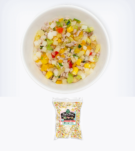 Bowls Fresh Dog Foodの10種類のシリーズはタンパク質、野菜、炭水化物のカテゴリに分かれています。